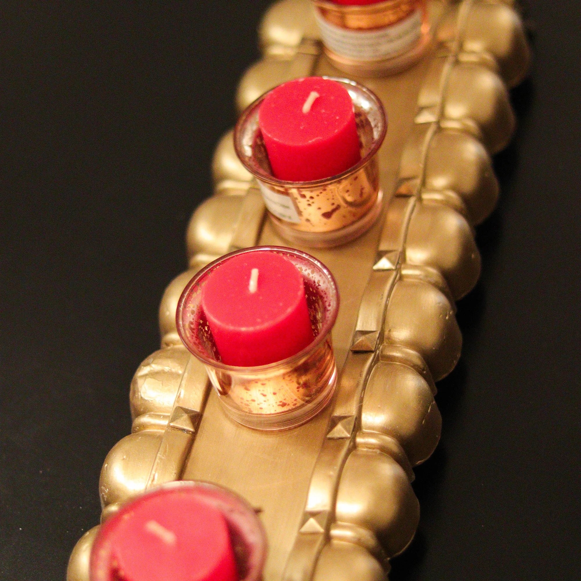 Transforma cualquier habitación con este exquisito centro de mesa que combina practicidad y estilo. Su base elevada con patas metálicas aporta estabilidad, mientras que los portavelas de cristal aseguran un toque moderno y atemporal.